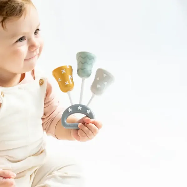 Sonajero vintage de campanas que entretiene y divierte al bebé.
