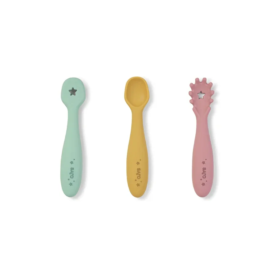 Este set evolutivo incluye: una pre-cuchara para los inicios, una cuchara dentada para los alimentos más escurridizos y una cuchara para los expertos comedores.