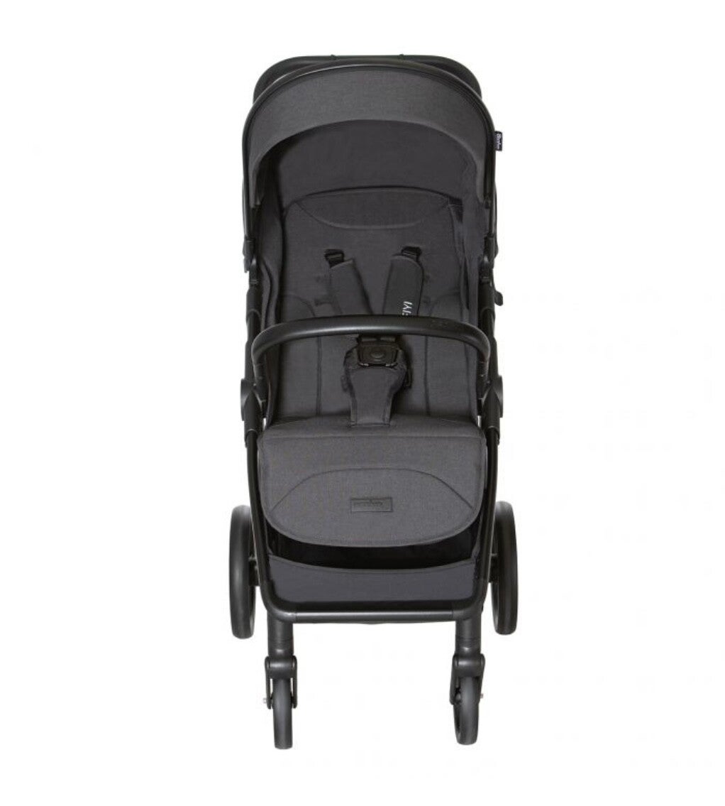 Diseñada para ofrecer comodidad y confort, esta silla de paseo cuenta con un asiento espacioso con un respaldo extra alto de 48 cm que se reclina completamente, junto con un reposapiés ajustable. La seguridad es una prioridad con un arnés de 5 puntos y una barra delantera extraíble. La cesta portaobjetos de gran capacidad y la capota doble extensible, que incluye un bolsillo y protección solar UV50, la hacen muy práctica. Gracias a su diseño compacto y al freno trasero fácil de activar, podrá llevarla con una sola mano. A la hora de guardarla o viajar, su reducido plegado cabe perfectamente en cualquier maletero.