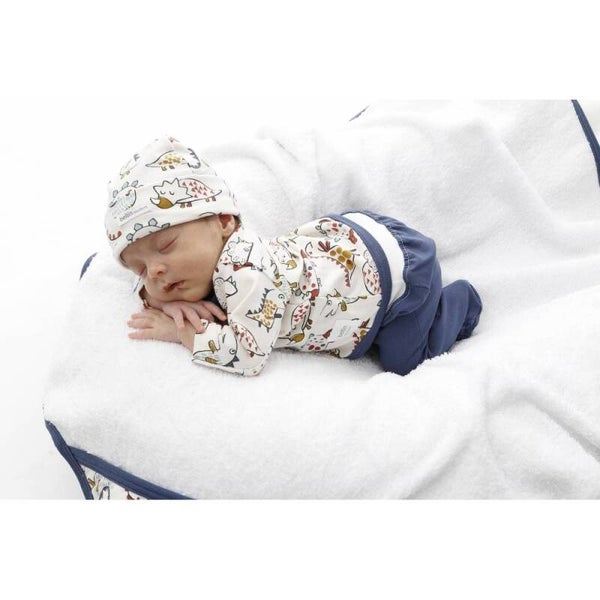 Primera puesta Jurasic fabricado en Barcelona por Beltin Newborn. Camiseta cruzada por delante muy cómoda y con un tacto muy agradable para el bebé recién nacido. Ideal para todo el año.