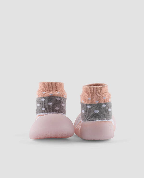 La suela está diseñada con pequeñas ventosas para que sea antideslizante, y gracias a sus materiales TPE es transpirable y no tóxica. Además, está diseñada para que el bebé tenga tacto en la planta del pie y pueda desarrollar la capacidad de reaccionar a agentes externos mientras camina.