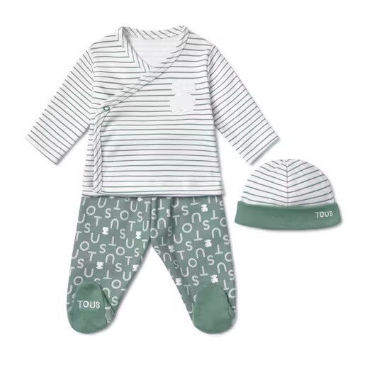 Conjunto de bebé Tous Baby de recién nacido 3 piezas: camiseta cruzada en manga larga, polaina con cinturilla elástica y gorro. Camiseta confeccionados en suave algodón a rayas y polaina estampada con osos y letras. Gorro a rayas con el borde vuelto liso, bordado con logo TOUS. Composición: 100% Algodón.