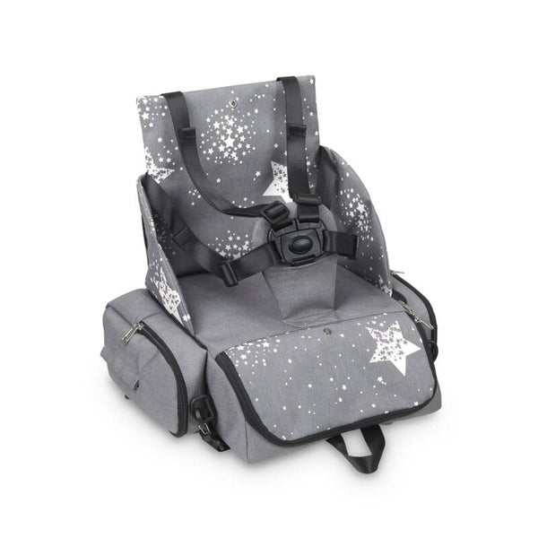 La trona portátil Stars – Mochila elevador hace que salir a comer con nuestros pequeños sea más fácil, higiénico y cómodo.