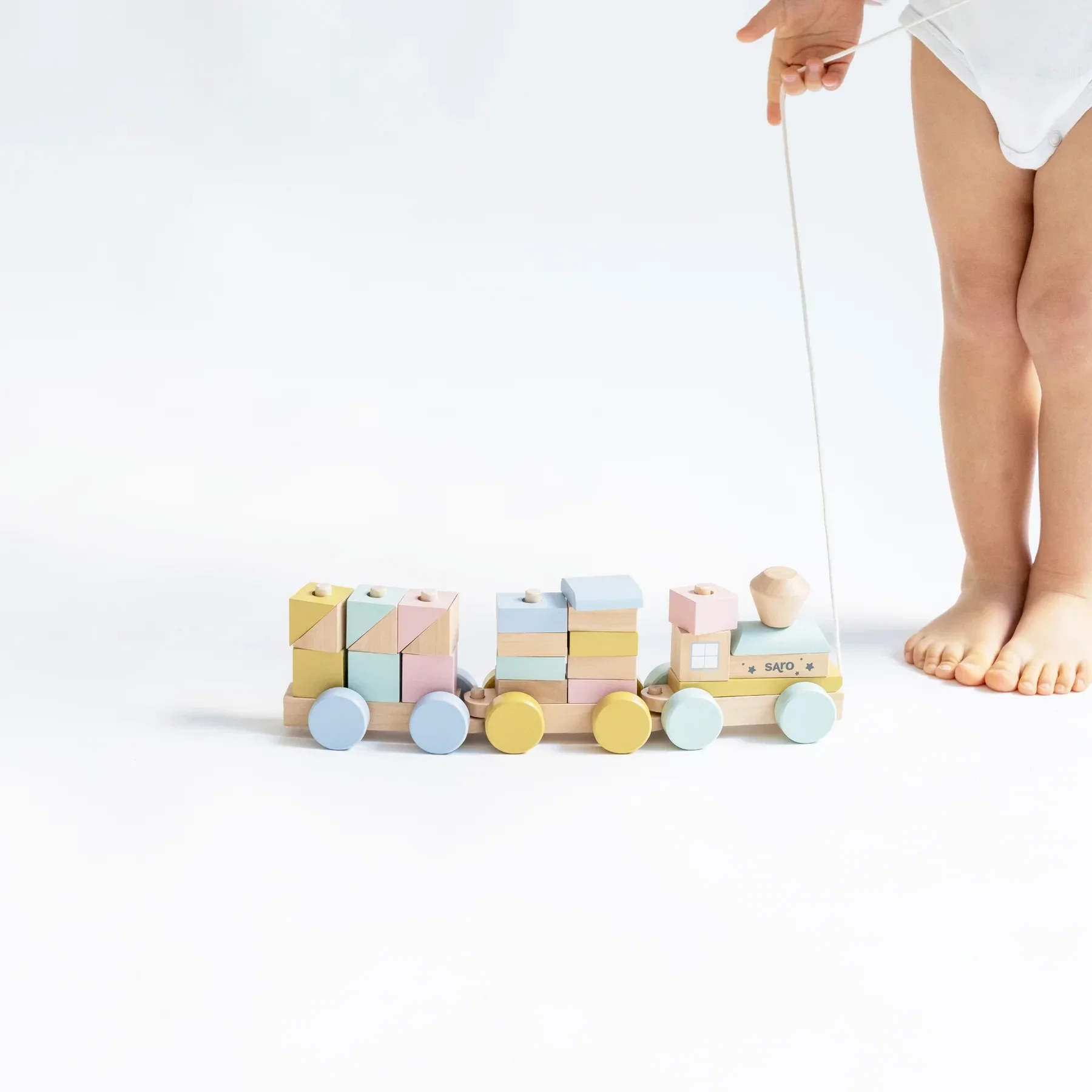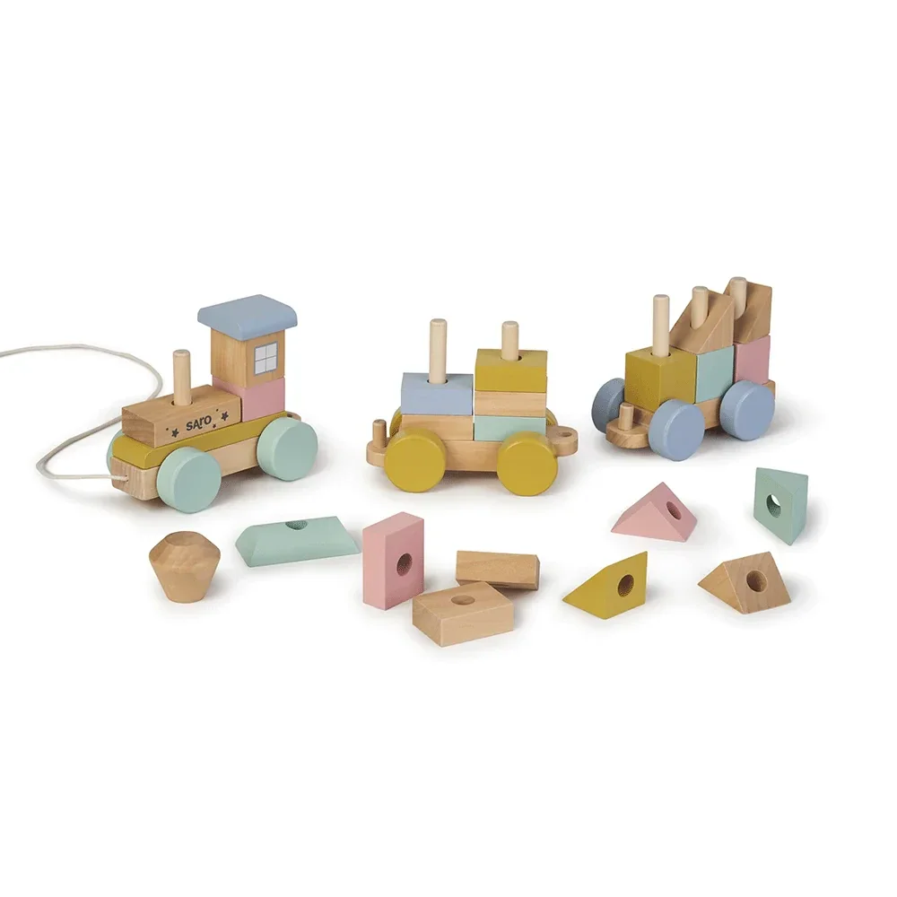 ¡Chu-chu! Este tren está a punto de salir de la estación de la diversión y tu peque marcará la ruta. Sus tres vagones están cargaditos de piezas apilables de distintos colores y formas que le ayudarán a desarrollar su coordinación mano-ojo y su motricidad fina. Desarrollará su imaginación diseñando sus vagones a su gusto para cada viaje. Cuenta con una cuerda para llevarlo de un lado a otro favoreciendo así su orientación espacial.